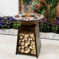 Ce brasero multifonction est parfaitement équipé avec un tiroir à cendres pratique pour faciliter le nettoyage et un espace de rangement intégré pour votre bois de chauffage.