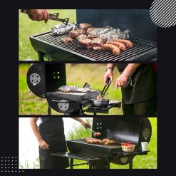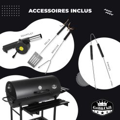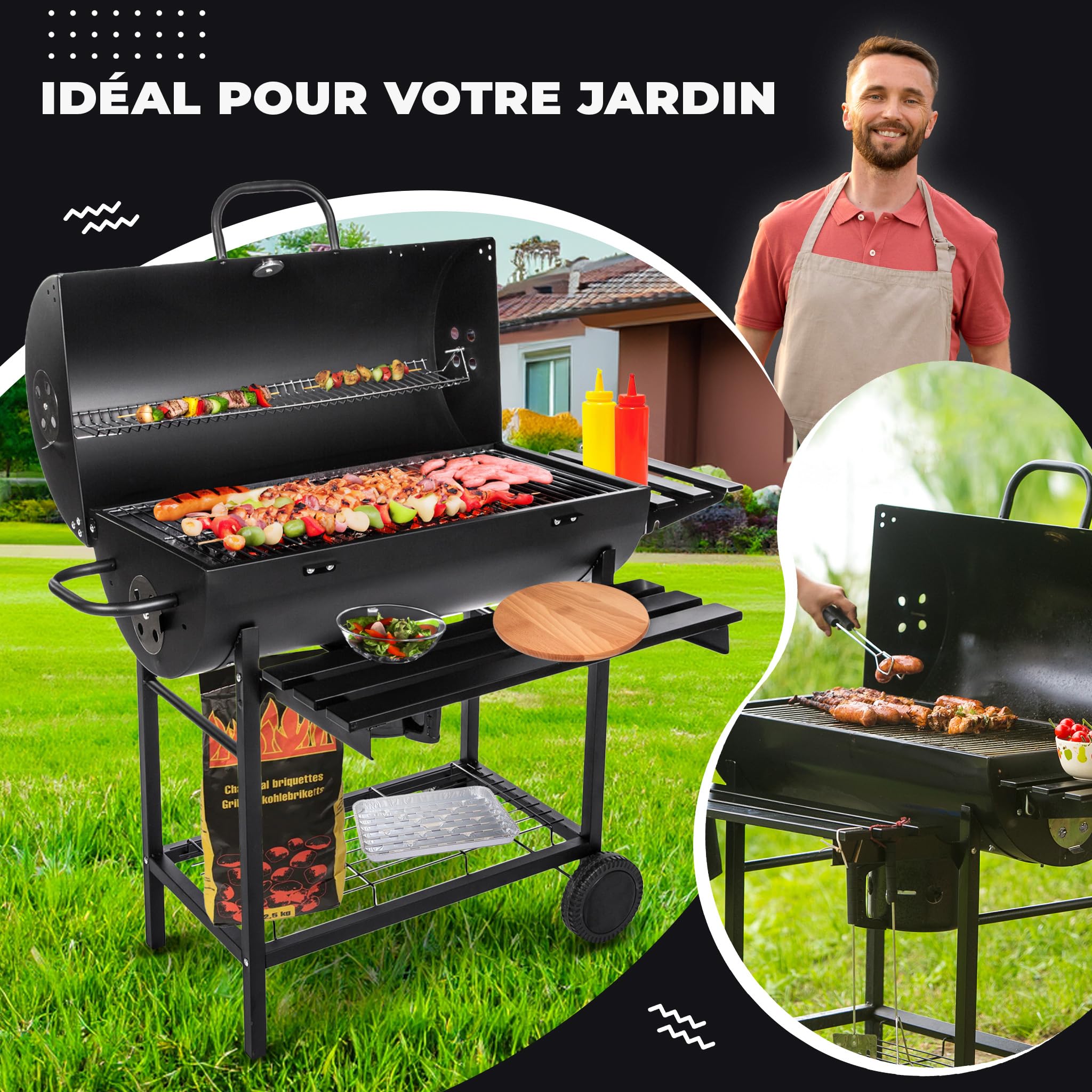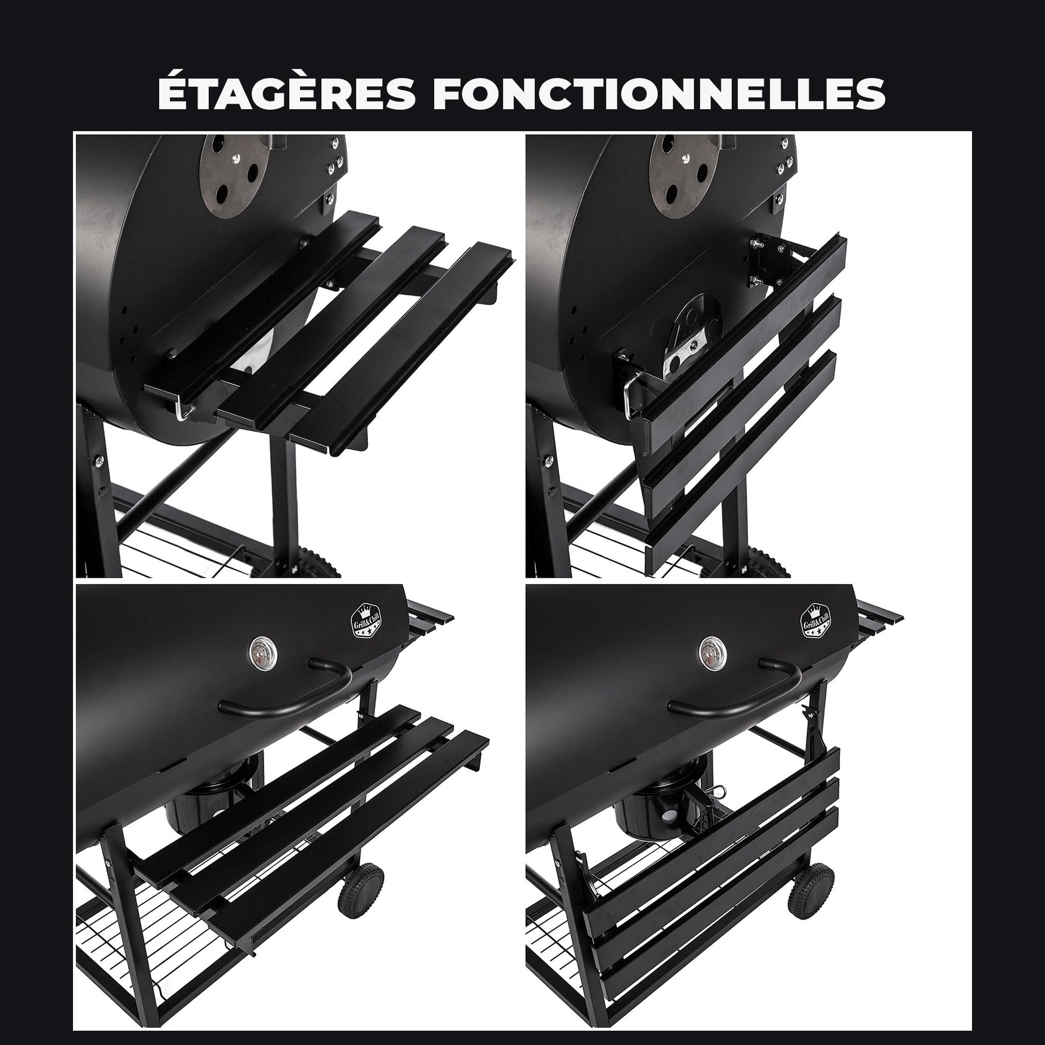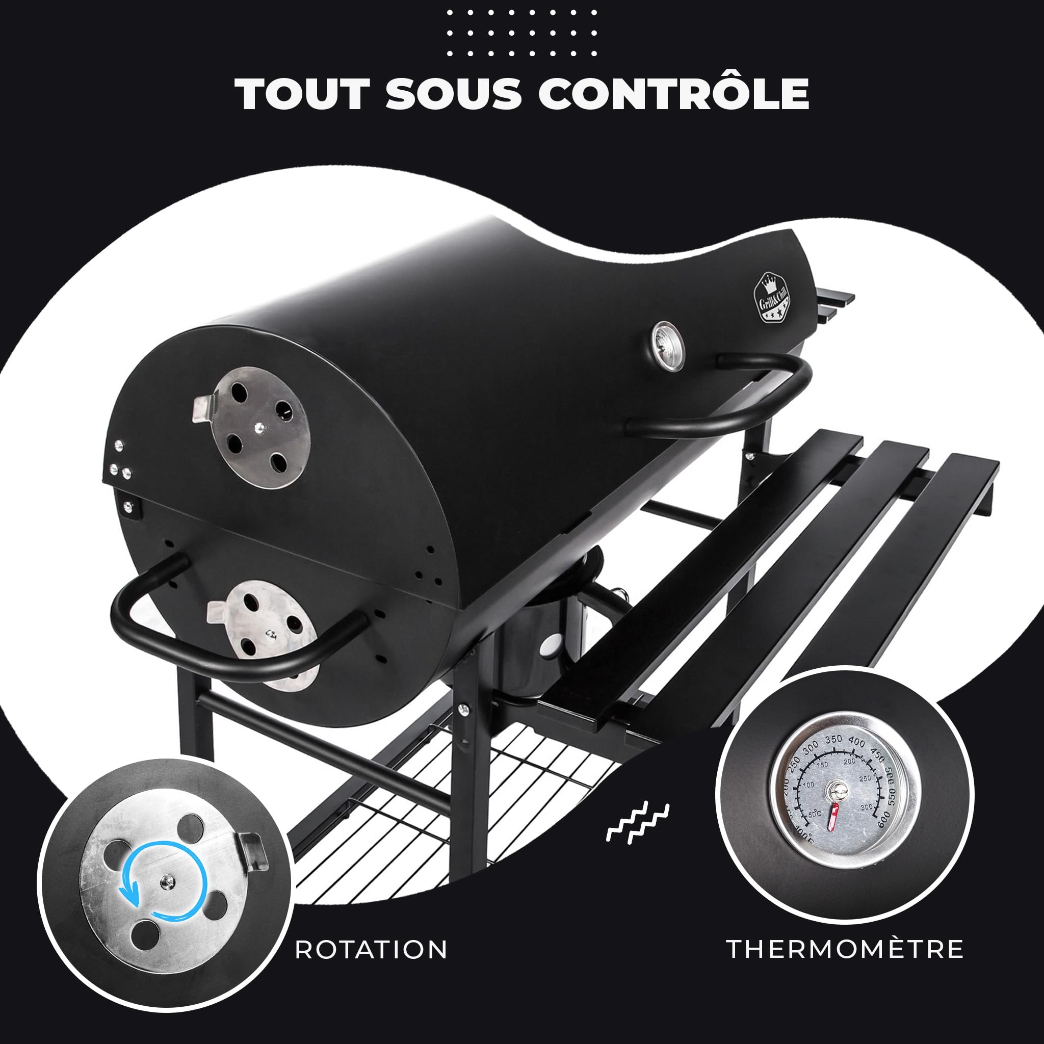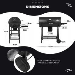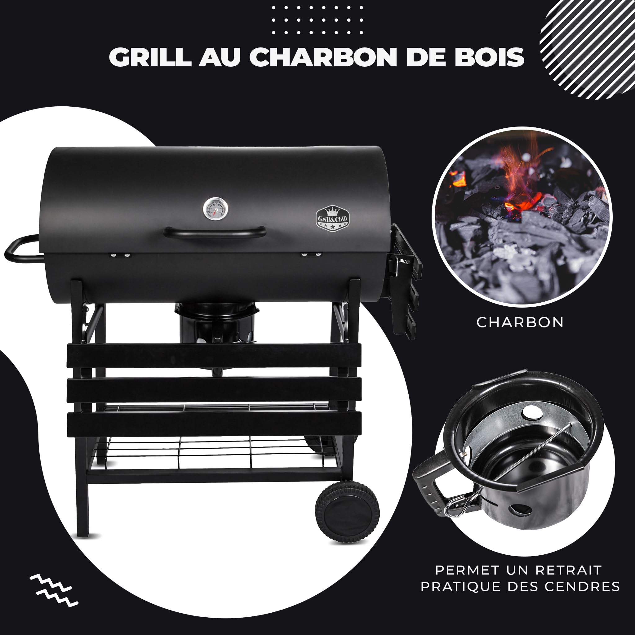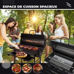 Five-Star Grill&Chill Barbecue à Charbon de Bois – Grande Grille Chromée 71×35 cm, Barbecue avec Couvercle, Tiroir à Cendres, Thermomètre, Roues de Transport, BBQ Charbon XXL, GC0002